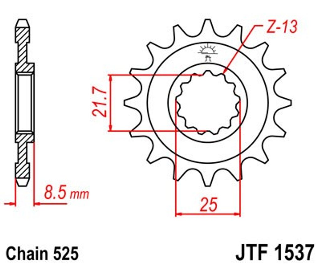 Reťazové koliečko JT JTF 1537-15RB 15 zubov,525 pogumované