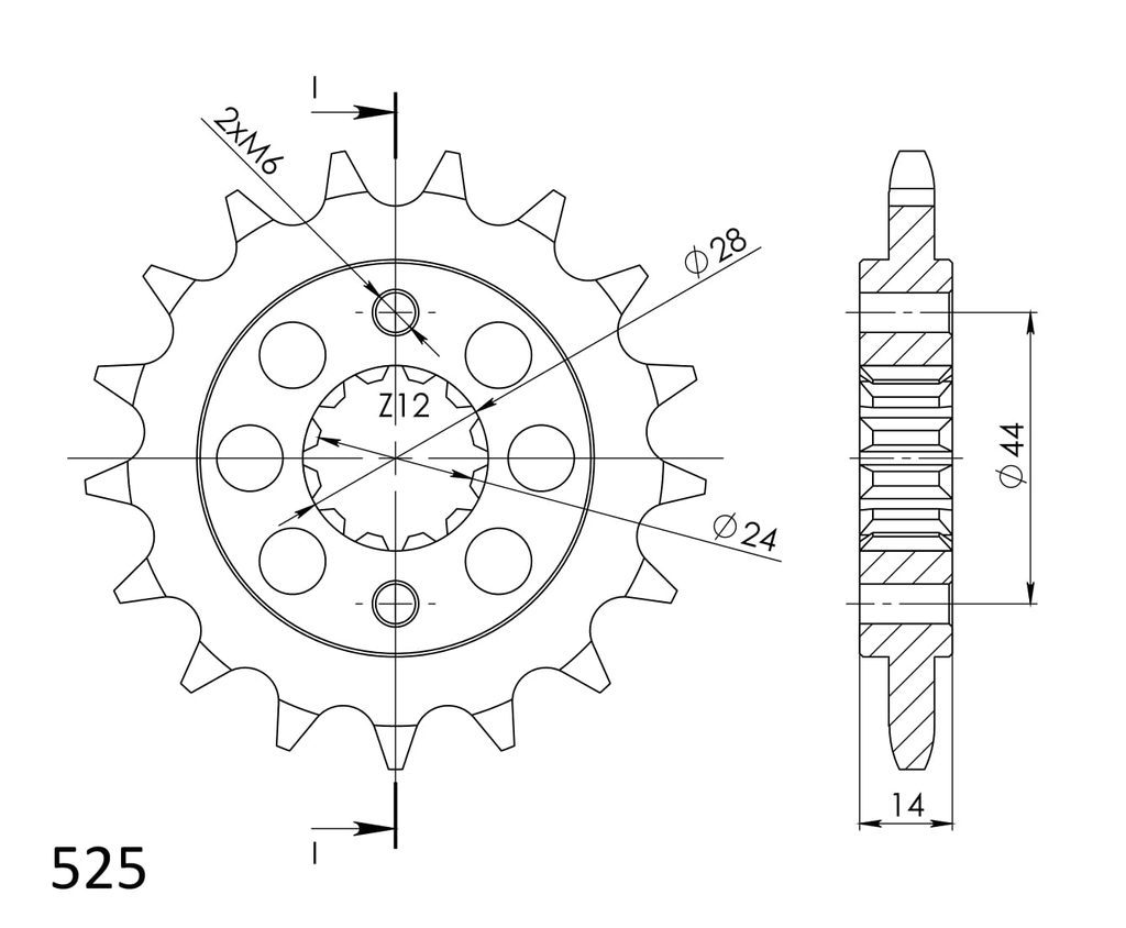 Pevnější zuby = vyšší životnost řetězové sady až o 10%. Kolečko 17z, řetěz 525.