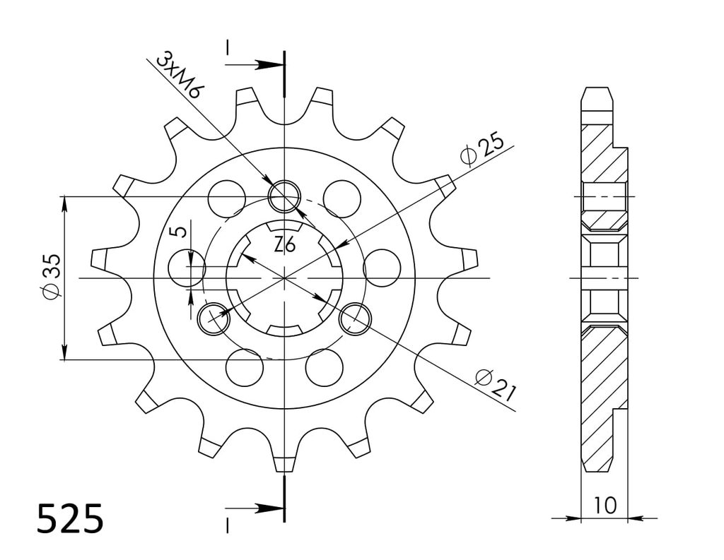 Pevnější zuby = vyšší životnost řetězové sady až o 10%. Kolečko 14z, řetěz 525.