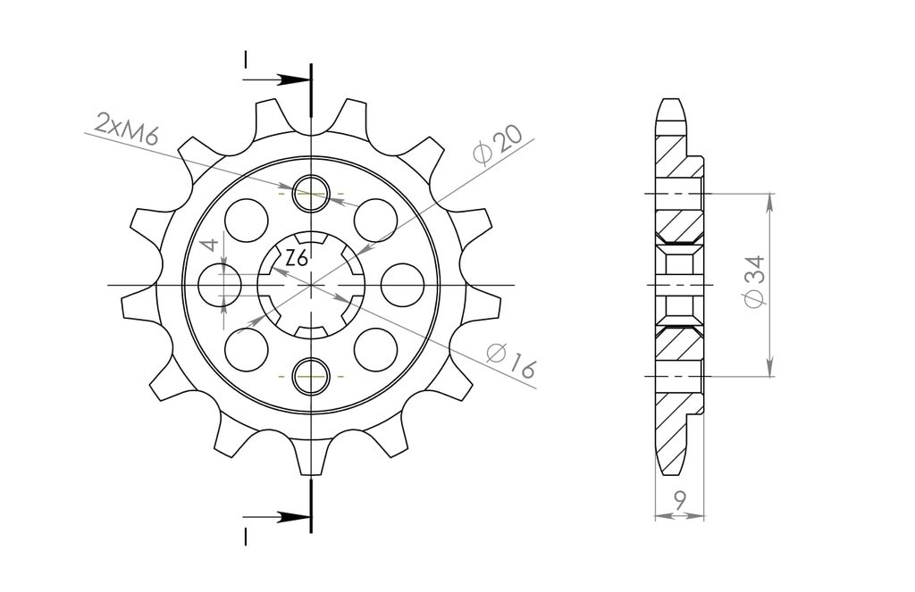 Pevnější zuby = vyšší životnost řetězové sady až o 10%. Kolečko 13z, řetěz 520.