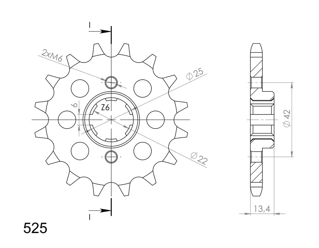 Pevnější zuby = vyšší životnost řetězové sady až o 10%. Kolečko 15z, řetěz 525.
