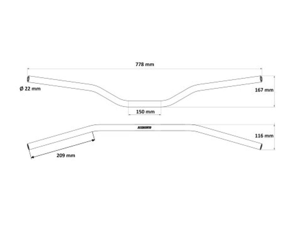 Technical Specifics: Diameter: 22 mm - Measure A:778 mm - Measure B:167 mm - Measure C:150 mm - Measure D:116 mm -Raw Material: Aluminium