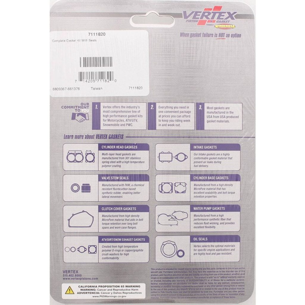 Vertex Complete Gasket Kit With Seals, ea, 1