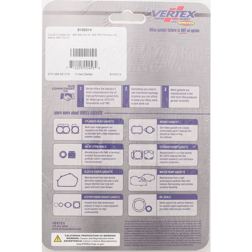 Vertex Top End Gasket Kit, ea, 1