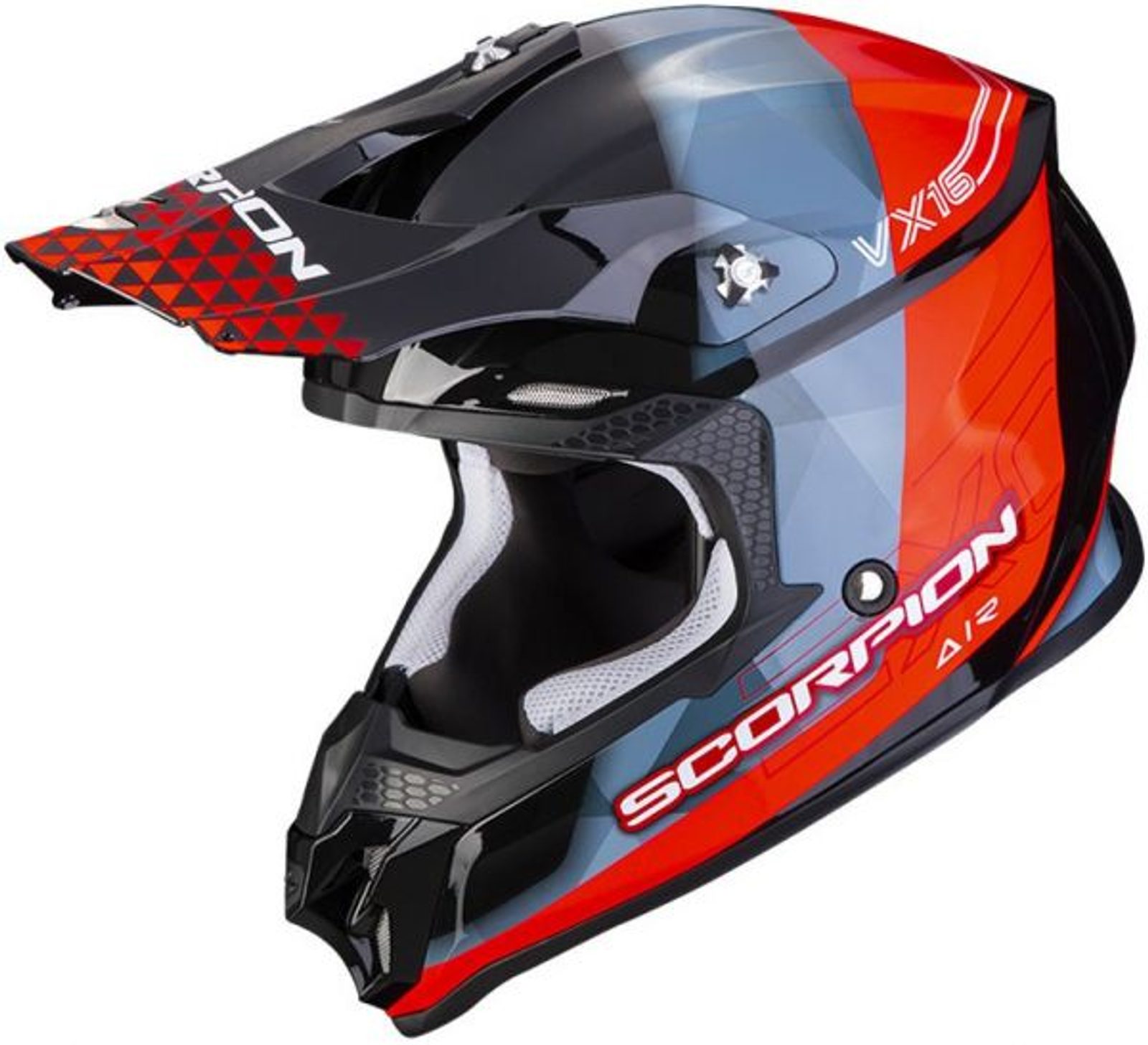 Motokrosová / endurová prilba Scorpion VX-16 EVO AIR je veľmi ľahká (váži len 1200 g (±50 g)), odolná a cenovo dostupná. Má pevnú polykarbonátovú škrupinu. Výstelku z KwikWick II® ktorá je prateľné, hypoalergénna a výborne odvádza pot. Helma obsahuje jednu z doplnkových fukcií a to dofukovací systém AirFit® ktorý umožňuje presné prispôsobenie prilby na hlave a zvyšuje pohodlie aj bezpečnosť. Vynikajúce odvetranie zabezpečujú početné vetracie otvory vpredu aj vzadu. Spĺňa prísnu normu ECE R22.06.