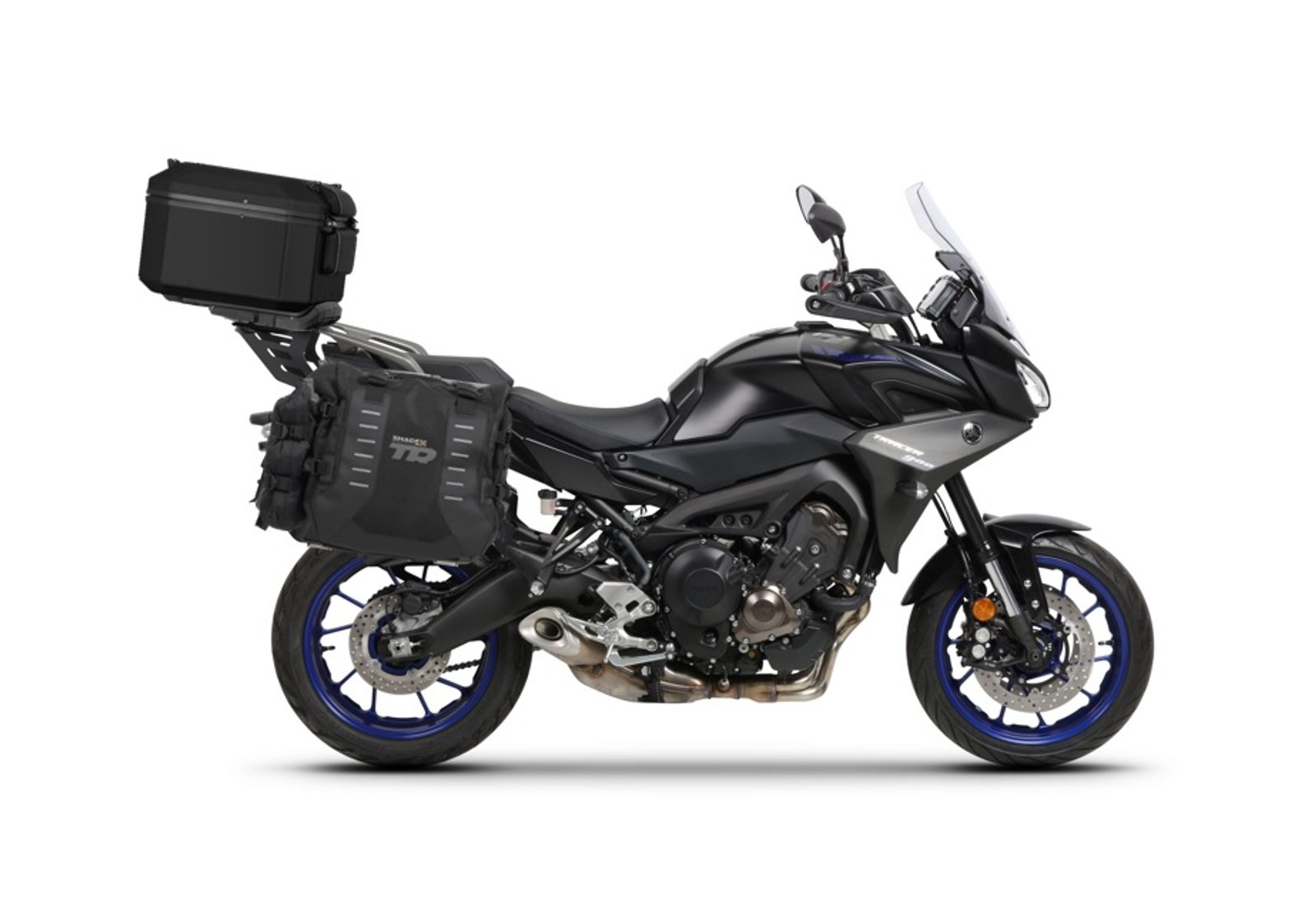 Set of SHAD TERRA TR40 adventure saddlebags and SHAD TERRA aluminium top case TR55 PURE BLACK, including mounting kit SHAD YAMAHA TRACER 900/GT