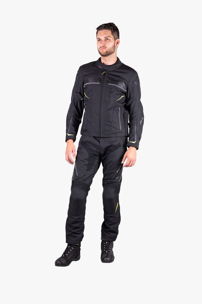 Voděodolná textilní bunda na motorku, vyrobená z odolného materiálu Polyoxford 600D. Díky celoobvodovému zipu ji snadno spojíte s kalhotami iXS Carbon-ST, se kterými tvoří pohodlný komplet pro sportovní jízdu.