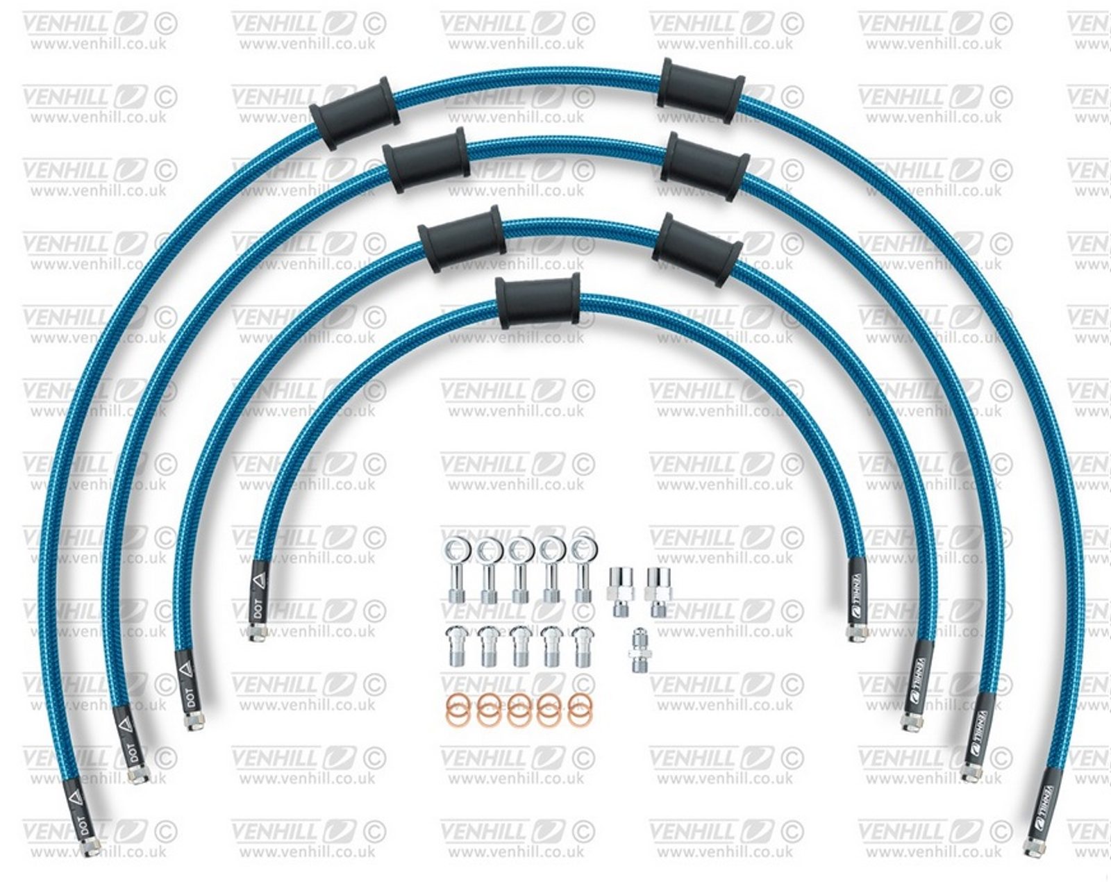 ŠTANDART -predok -sada Venhill POWERHOSEPLUS BMW-11001FS-TB (4 hadice v sade) priehľadné modré hadice, nerezové koncovky