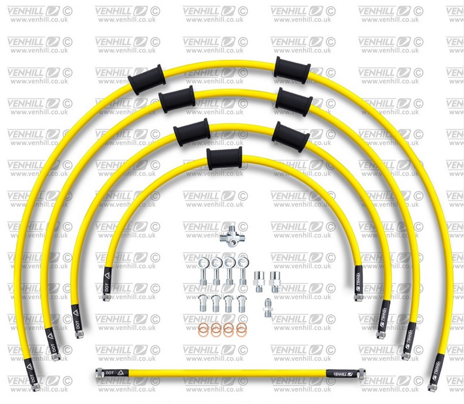 ŠTANDART -predok -sada Venhill POWERHOSEPLUS KAW-10002F-YE (5 hadíc v sade) žlté hadice, chrómové koncovky