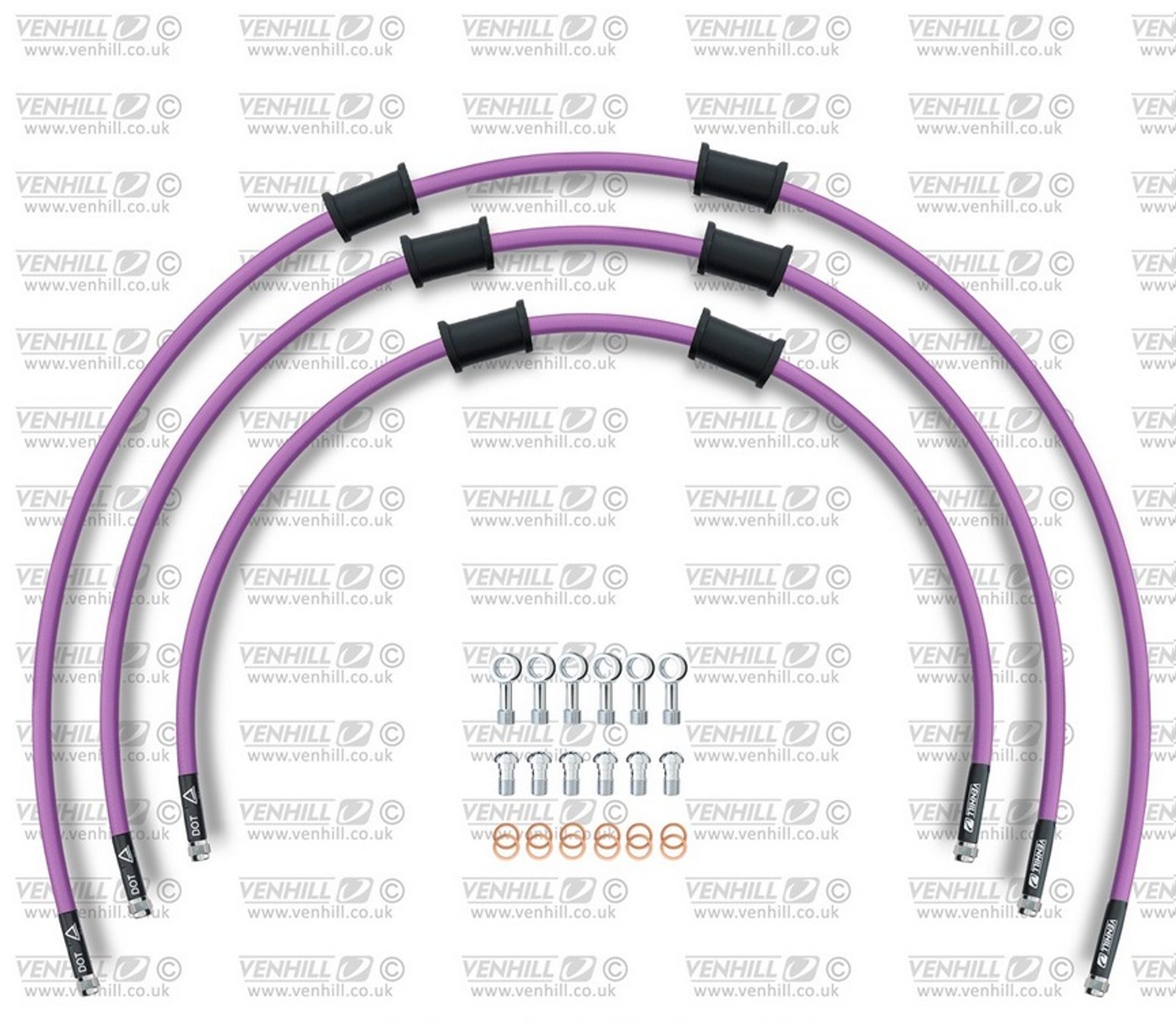 ŠTANDART -predok -sada Venhill POWERHOSEPLUS SUZ-11004F-PU (3 hadice v sade) Fialové hadice, chrómové koncovky