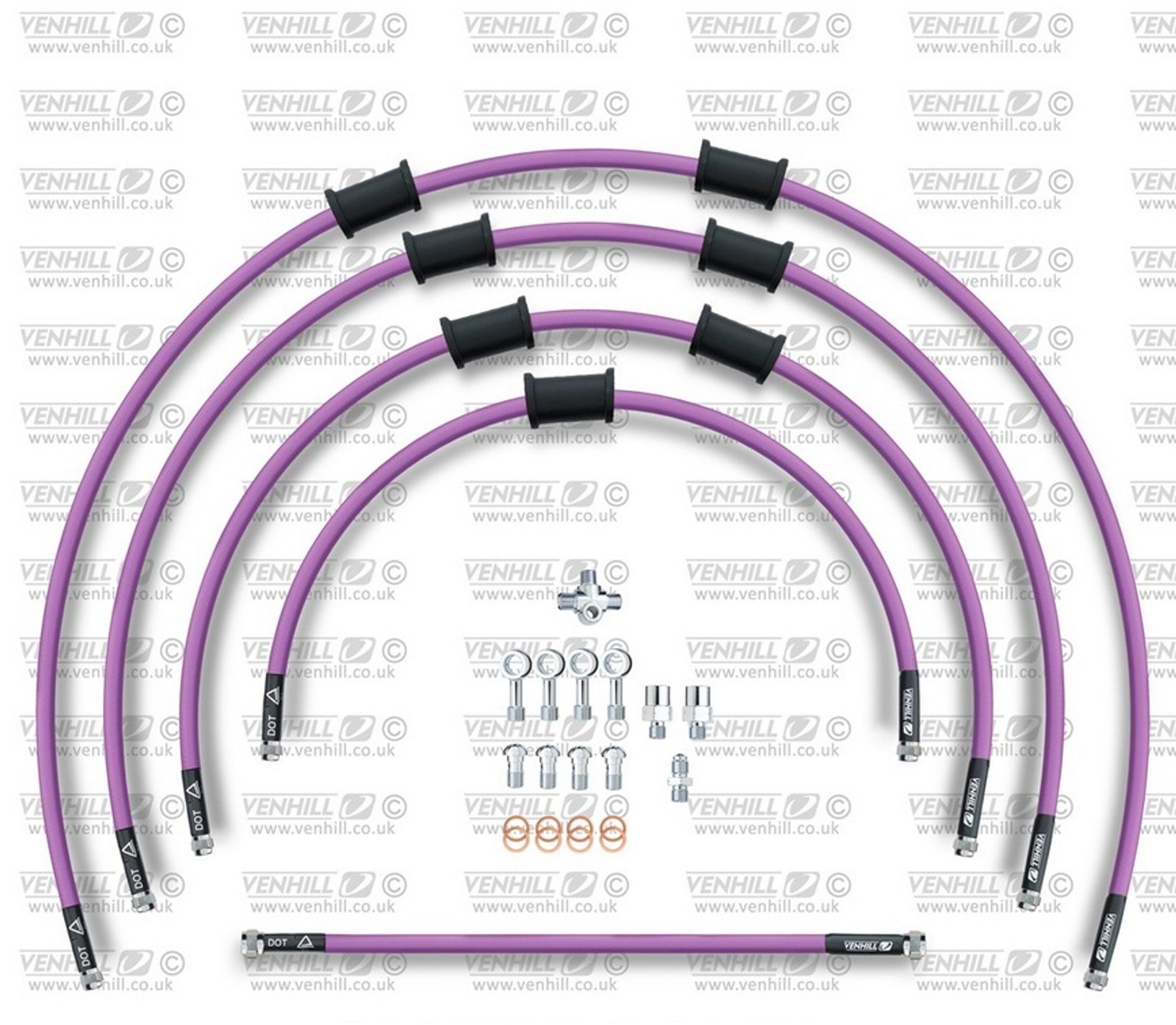 ŠTANDART -predok -sada Venhill POWERHOSEPLUS YAM-10031F-PU (5 hadíc v sade) Fialové hadice, chrómové koncovky