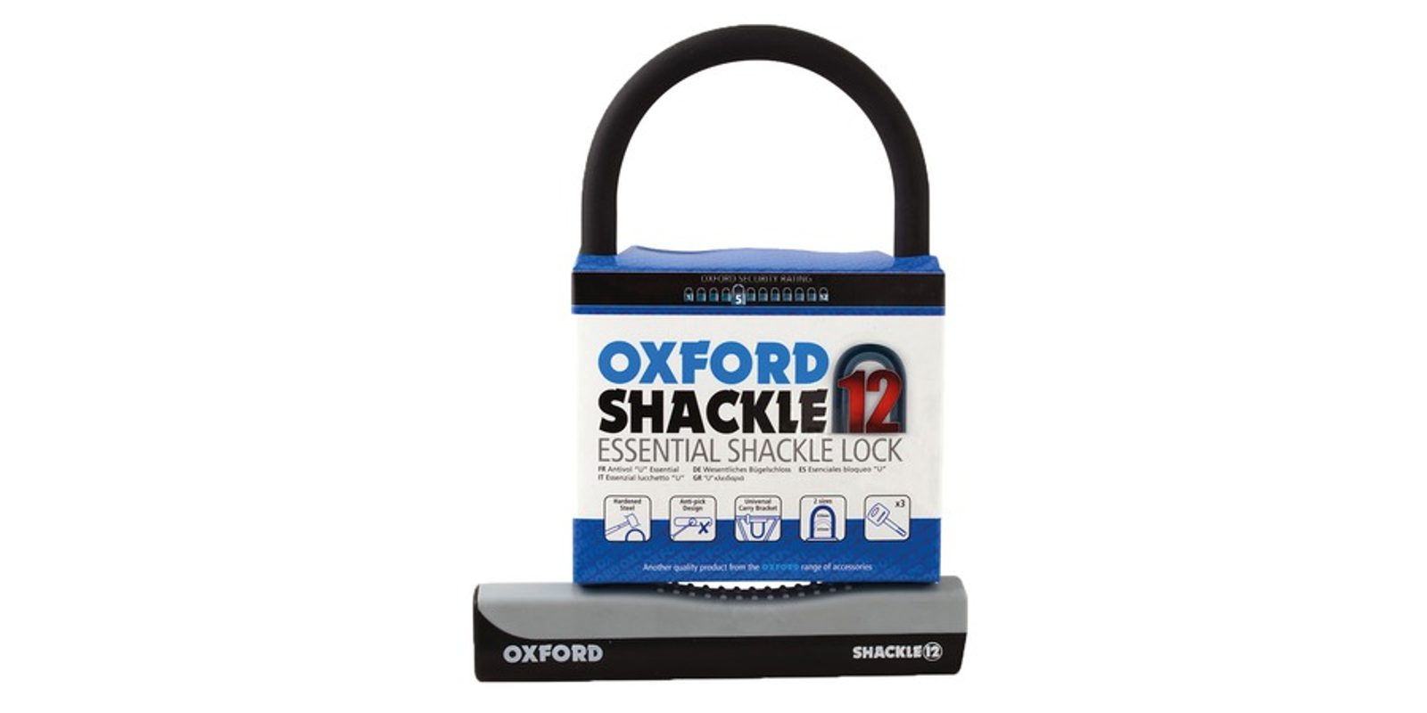 zámok U profil Shackle 12, OXFORD (šedý/černý, 245 x 190 mm, priemer čapu 12 mm)